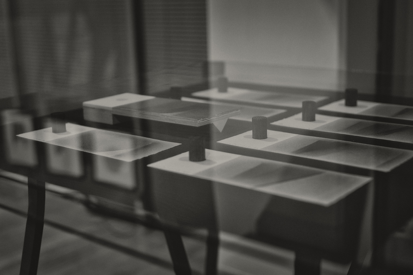 Biblio-obiekty, to grupa trzech, ściśle powiązanych ze sobą przestrzeni inspirowanych książką. Intencją mojej pracy była próba ukazania tego materialnego przedmiotu w sposób, który metaforycznie oddawałby jej niematerialne, kulturowe znaczenie. W tym celu posłużyłem się z definicji „lekką” metodą prezentacji jaką jest zamknięta i rozświetlona przestrzeń light-boxa. W poszukiwaniu interesujących sekwencji, przewracałem kartki książki włożonej do jego wnętrza. Zewnętrzne krawędzie stron muskały płótno, a ja rejestrowałem ten proces za pomocą kamery. W ten sposób powstała filmowa impresja pt.: „Biblioanimatus”. W konsekwencji powyższego działania wyłoniła się kolejna perspektywa — statycznego obrazu, stop-klatki. W ten sposób doszło do transpozycji przedmiotu książki na kaligraficzny w charakterze znak, czego efektem stał się cykl grafik-kompozycji bibliosferycznych ujętych w formie artystycznej książki. Sam obiekt ma w moim odczuciu estetyzujący charakter, dzięki czemu pełni dekoracyjną i użytkową funkcję w moim domu. Stawiając moją bibliotekę w opozycji ideowo-formalnej do wspaniałych „książkowych” instalacji Anselma Kiefera, oddaję go w Państwa ręce zachęcając do poszukiwania indywidualnego odbioru i tropów.